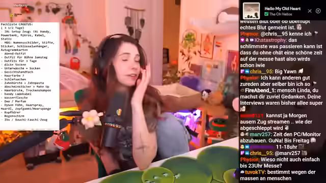 00:22:32Der Streamer erkennt, dass er eine Packliste benötigt, um systematisch alle notwendigen Gegenstände für die Reise zur Kaktus-Messe zusammenzustellen. Da sein Kleiderschrank nicht im Streamingraum ist, kann er das nicht visuell gemeinsam mit dem Chat machen, aber er bittet um Hilfe bei der Erstellung einer schriftlichen Liste. Er hofft, dass dies ihm helfen wird, nichts zu vergessen und gleichzeitig den Stress etwas zu reduzieren, da er die Aufgaben dann abhaken kann. Der Chat soll mit seiner Schwarmintelligenz unterstützen.