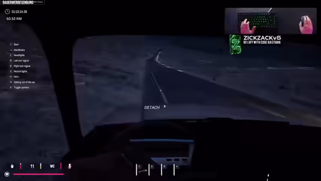02:38:47Die Fahrt startet unter unglücklichen Umständen. Die Spieler versuchen, mit einem beschädigten Auto zu navigieren, das ständig an Kraft verliert. Mehrere Reifen gehen kaputt, was zu unkontrolliertem Fahrverhalten und unfreiwilligen Ausstiegen führt. Das Auto wird unbrauchbar und muss sichtbar an der Straße zurückgelassen werden. Das Hauptproblem dabei ist der Mangel an Ersatzteilen, insbesondere Reifen, die nach wenigen Kilometern stets versagen. Nachdem das Auto nicht mehr fahrbar ist, wird ein Restart beschlossen.