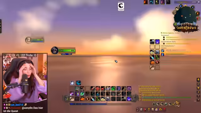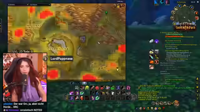 01:04:13Nach diversen persönlichen Themen startet der Stream in World of Warcraft (WoW). Streamer erklärt den Hintergrund des Sauerkraut-Events mit dem 'ganz harten Grind' (GHG) auf einem Hardcore-Server, wo jeder Tod den Charakter vernichtet. Eine Kanalpunkte-Wette läuft, ob er im Stream sterben wird.