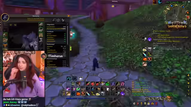 06:00:38Der Streamer zeigt sich frustriert von einer spezifischen Quest, die er als schwer empfindet, und äußert sogar, das Spiel zu deinstallieren und sich bei Blizzard zu beschweren. Trotzdem erinnert er sich an die positiven Erfahrungen, die er bisher in WoW hatte. Dies spiegelt die gemischten Gefühle der Gruppe wider, während sie weiterhin gemeinsam spielen und sich über die Herausforderungen lustig machen. Die Interaktion mit dem Chat bleibt zentral, auch wenn die Quest nicht wie gewünscht verläuft.