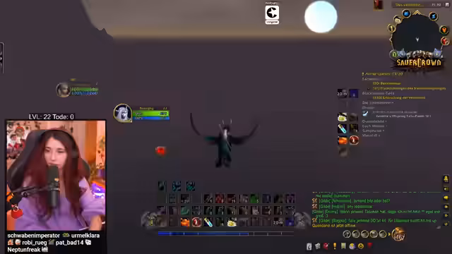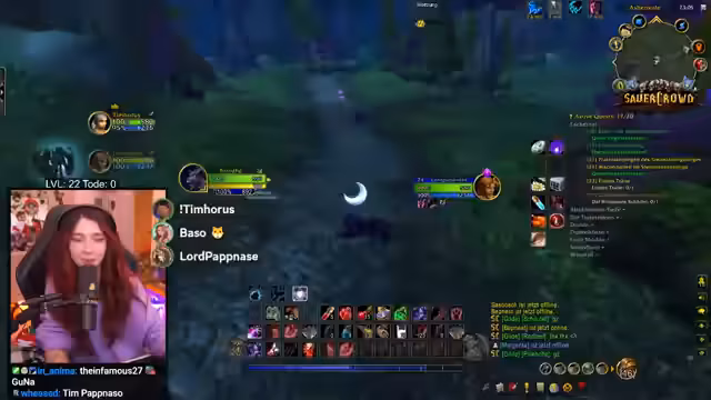 04:54:30Eine geplante Stretching-Break wurde durch den Streamer als notwendig erachtet, um dem langen Sitzen während des WoW-Spiels entgegenzuwirken. Gleichzeitig startete die Gruppierung für einen gemeinsamen Raid. Mit Tim und Lord Pappnase wurde die Gruppe für das Gebiet Eschenthal vervollständigt. Der Streamer bezeichnete sich selbst als 'WUW-Noob' auf Level 22 und bat die Zuschauer um Hilfe und Tipps im Chat, wobei er verständnislos dafür zeigte, wenn diese nicht alle befolgt wurden. Eine Wiederholung des gestrigen Streams wurde angedeutet, um Levels aufzuholen.
