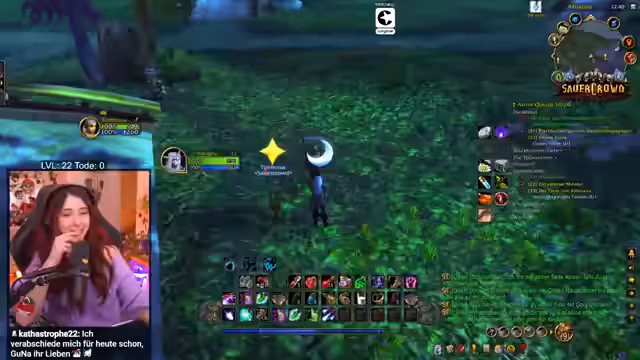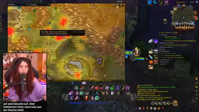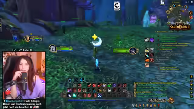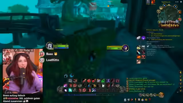 01:23:10Stream-Start mit WoW, Baso stellt sich als Anfängerin vor (Level 22) und ihre Ziel, Level 60 zu erreichen für einen bevorstehenden Raid. Sie betont ihre Noob-Status und erwähnt, dass sie nicht gestorben ist (Tode 0). Nagura wurde für den Raid gelobt. Baso stellt sich vor und erwähnt ihre Teilnahme am Sauerkraut-Projekt. Sie ist offen für Hilfe im Chat, da sie sich oft verloren fühlt.