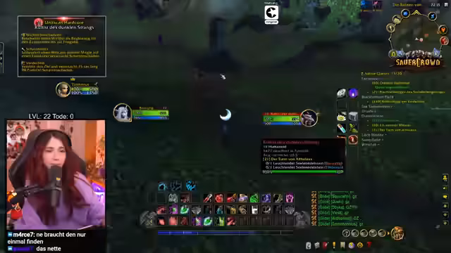 04:27:02Nach mehreren vergeblichen Versuchen gelingt es dem Team, den benötigten Seelen-Edelstein von einem Mob zu looten, nachdem ein anderer Spieler ihn versehentlich aufgesammelt hat. Dieser humorvolle Moment wird als persönlicher Erfolg gefeiert, quasi als 'Beweis für die beste WoW-Spielerin der Welt', und das Item kann nun zur Quest-Aufgabe gebracht werden.