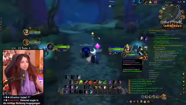 06:27:48Die Gruppe entscheidet sich, ein gefährliches Horde-Lager zu umgehen und stattdessen eine sicherere Quest im Süden zu verfolgen. Dies ist Teil des 'Sauerkraut Events', bei dem der Streamer mit zwei anderen Spielern questet. Er gibt zu, kein WoW-Profi zu sein, und bittet die Chatcommunity um Tipps. Er betont die Wichtigkeit von Vorsicht im Hardcore-Modus, da der Tod den Verlust des gesamten Fortschritts bedeutet. Mit neuen Buffs aus der Community, wie 'Machtwort: Seelenstärke', sind sie bereit für die nächsten Herausforderungen.