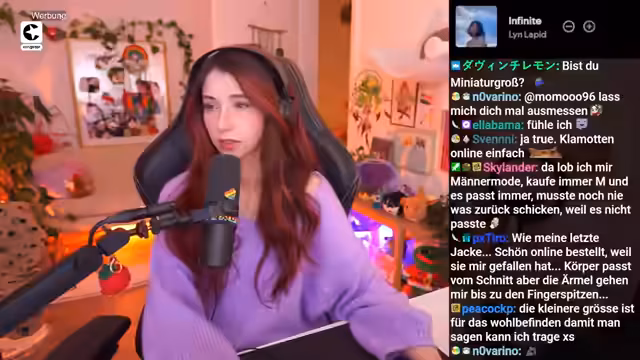 01:13:27Die Diskussion über Kleidung und Bequemlichkeit wird aufgegriffen, nachdem der Streamer einen frisch gekauften, bunten oversized Pullover ein zweites Mal trägt. Er betont, dass farbige Kleidung ihm ein Frühlingsgefühl und Freude bereitet, und entscheidet sich bewusst für eine Schlafhose anstelle einer 'Stream-Hose', weil sie komfortabel ist. Dabei wird deutlich, dass Online-Shopping für ihn aufgrund von Größenproblemen und Erfahrungswerten nicht mehr in Frage kommt, da er gekaufte Kleidung nur anprobieren und spüren möchte.