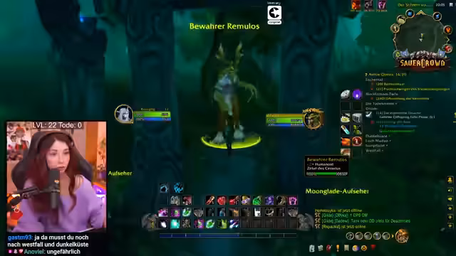 03:03:47Die Nächste Mission besteht darin, die Schwimmgestalt für Druiden zu lernen, was dem Streamer nach den traumatischen Erlebnissen eine absolute Priorität hat. Er nutzt den Moonglade-Port für schnelle Reisen und lehrt seine Mitspieler den Trick, bei technischen Problemen den Ruhestein und den Exit-Trank gleichzeitig auszulösen, um schnell aus Gefahrensituationen zu entkommen.
