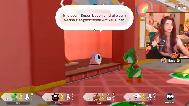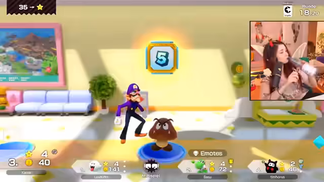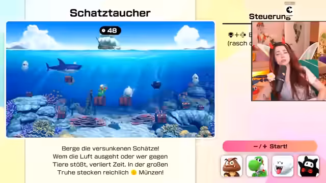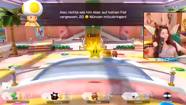 01:52:11Die Hauptaktivität des Streams dreht sich um verschiedene Minispiele aus dem Mario Party-Universum. Die Streamerin und ihre Mitspieler bewegen sich über ein dreistöckiges Spielfeld, um Sterne zu finden. In einem Minispiel müssen sie Rennen bestreiten und in einem anderen herausfinden, welches Bild sich von den anderen unterscheidet. Die Streamerin beschreibt das Spiel als das 'schwerste Spiel, das sie je gespielt hat', was die hohe Komplexität und die Nervenanspannung verdeutlicht. Die Erfolge und Misserfolge der Spieler werden live kommentiert und die Stimmung ist durchweg ausgelassen und kompetitiv.