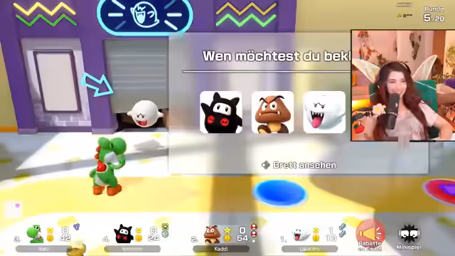01:10:34Im weiteren Spielverlauf erleben die Spieler verschiedene Ereignisse auf dem Spielbrett. Die Streamerin erhält einen Stern und macht sich über den Preis eines Handschuhs von 40 Euro lustig. Sie spricht auch über ihre Münzprobleme und den Kauf von Pilzen. In einem speziellen Minispiel muss die Streamerin einen anderen Spieler per Zufall auswählen, was sie zunächst nicht richtig umsetzt. Das Spiel hat Elemente des Zufalls, aber auch der strategischen Taktik, da es gilt, Sterne zu sammeln und gleichzeitig seine Münzen zu schützen. Es werden auch alternative Spielvarianten wie '1 gegen 2' oder '1 gegen 3' als spannendere Formate diskutiert.