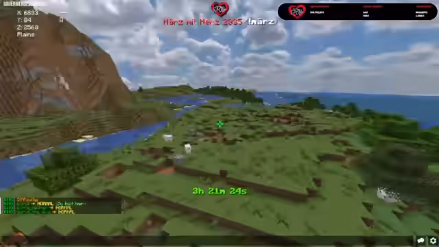 00:53:22Bevor das Spiel richtig beginnt, muss der Streamer den Namen seines Minecraft-Charakters ('Badrockrocked') herausfinden, um den von Metashi bereitgestellten Server betreten zu können. Nach dem erfolgreichen Beitritt stellt Metashi stolz das gemeinsame Overlay für den Stream vor, das das 'März mit Herz 25'-Logo trägt. Beide Streamer zeigen sich beeindruckt vom bisherigen Spendenerfolg, der fast 2000 Euro ohne direkte Aufforderung erreicht hat, und heben hervor, dass selbst kleine Spenden einen großen Unterschied machen.