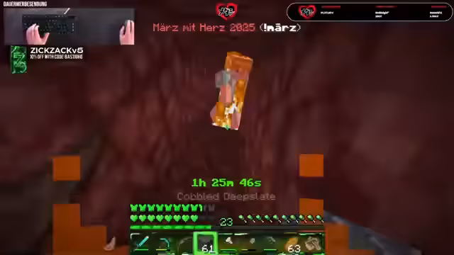 01:46:52Während des zeitintensiven Bergbaus werden immer wieder persönliche Themen angesprochen. Die Streamer unterhalten sich über ihre Karriere, wobei der Gast betont, bereits über 25.000 Stunden in Minecraft verbracht zu haben und sogar sieben Bücher über das Spiel geschrieben zu haben. Der Hauptorganisator betont für den Charity-Stream "März mit Herz" erneut die Wichtigkeit der Spendenaktion für die Stiftung Deutsche Krebshilfe und appelliert an die Zuschauer, den Wert ihrer einfachen Teilnahme und Aufmerksamkeit nicht zu unterschätzen, unabhängig von einer Spende.