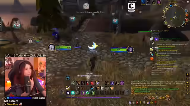 07:30:12Es wird über die Quest 'Verseuchte Land, tollwütiger Distelbeerfang' gesprochen. Jonsmann führt eine ähnliche Quest aus. Diskussion über die Schwierigkeit des Fangs mit Gegenständen. Der Streamer erreicht Level 16 nach einer Quest und sammelt Kräuter. Es wird über Dungeon-Rollen (Tank, Heiler, Damage-Dealer) reflektiert – bevorzugt wird der Damage-Dealer für weniger Verantwortung. Ziel ist es, heute Level 18 zu erreichen, wofür noch 800 XP fehlen.