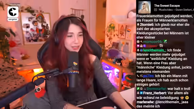 00:57:41Der Streamer reflektiert über gesellschaftliche Normen bei Kleidung: Er betont, dass Kleidung keine Geschlechterzugehörigkeit haben sollte und er selbst beispielsweise Hoodies aus der Frauenabteilung trägt, da diese bequemer sind. Als positives Beispiel nennt er männliche Stream-Kollegen in Anzügen oder Röcken. Sein Kernargument: Solange Menschen sich in ihrer Kleidung wohlfühlen, sollte es egal sein, aus welcher Abteilung sie stammt – Einschränkungen durch toxische Männlichkeit lehnt er ab.