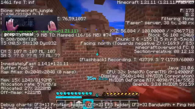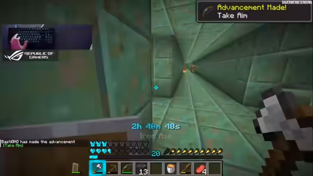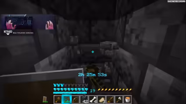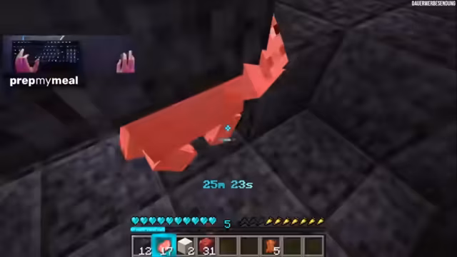 02:59:08Nach längerer Suche und scheinbar endlosem Gegrabe wird endlich eine Festung entdeckt. Dies ist ein Wendepunkt, da der Streamer nun Zugang zu Blazes hat. Er beginnt sofort, die Blazes zu jagen und sammelt Blaze-Rods. Gleichzeitig werden strategische Pläne für die Goldfarmung geschmiedet, da er Gold für den Handel mit Piglins benötigt. Konzepte wie eine Zombified Piglin-Farm und die Nutzung von Chestboats als Lagerlösung werden diskutiert, da herkömmliche Kisten in diesem Modus nicht stabil sind.
