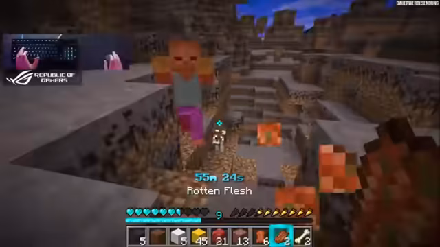 01:20:45Nach den anfänglichen Erfolgen konzentriert sich der Streamer auf das Sammeln von Ressourcen und das Entwickeln einer Taktik. Sein Hauptziel ist es, mehr Knochen zu beschaffen, um sein Wolfs-Team weiter auszubauen, was als entscheidender strategischer Vorteil angesehen wird. Beim Erkunden der Welt stellt er fest, dass viele Blöcke durch die Randomizer-Regeln ausgetauscht werden. Er findet beispielsweise einen Zombie-Dorfbewohner mit veralteter Textur und äußert den Wunsch, dass solche Grafiken aktualisiert werden. Die wichtigste Entwicklung ist jedoch der erste Kontakt mit Holz, was als riesiger Jackpot gefeiert wird, da es für den Aufbau von Werkzeugen und das Überleben fundamental ist.