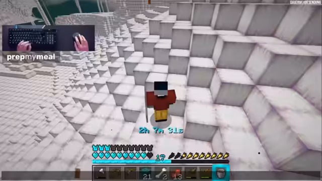 00:35:35Um das Ziel, den Enderdrachen zu besiegen, zu erreichen, muss der Streamer zunächst ein Netherportal erschaffen. Da der Abbau von Obsidian mit der unmöglich ist, entwickelt er einen alternativen Plan. Er will aus dem in der Welt weiterhin vorhandenen Wasser und Lava Obsidian gießen, um so ohne Werkzeug ein Portal herzustellen. Gleichzeitig beobachtet er, wie sich die Welt mit neuen, zufälligen Blöcken weiterentwickelt.