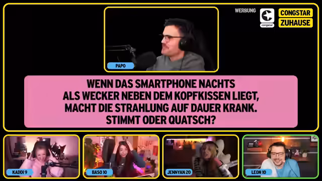 Es wurde ein interaktiver Abend gestaltet, der aus mehreren Teilen bestand. Nach chaotischen Runden in verschiedenen Spielen wurde ein Quiz zu Alltagsmythen durchgeführt. Eine Teilnehmerin ging hier klar als Siegerin hervor. Der Stream wurde genutzt, um auf die Kooperation mit congstar hinzuweisen.