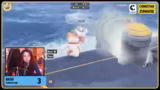 02:21:14Es entbrennt ein intensiver und überaus chaotischer Wettkampf, in dem die Teilnehmer um die Vorherrschaft ringen. Besonders eine Teilnehmerin, Jen, entwickelt eine bemerkenswerte Spielstärke und dominiert die Runden durch ihre aggressive und effektive Vorgehensweise. Ihre Fähigkeit, Gegner konsequent auszuschalten, führt bei anderen Teilnehmern zu wachsendem Frust und gezielten Kommentaren wie 'Girls support Girls!', was die Dynamik unterstreicht. Jen scheint oft unsterblich und kehrt immer wieder ins Spiel zurück, was von den anderen als ungerecht empfunden wird. Die wettkampfbetonte Stimmung wird durch humoristische Aktionen aufgelockert, wie etwa die Verwendung von Bananenschalen als Waffe, und wird von den Moderatoren mit viel Humor begleitet.