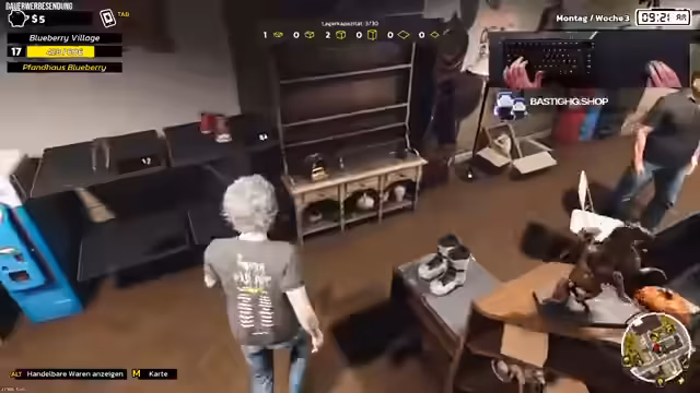 05:28:54BastiGHG erklärt, dass er die guten Sachen im eigenen Pfandhaus verkaufen muss. Er fragt sich, ob sein Pfandhaus immer offen hat. Er hat sein Auto schon mal deutlich vergrößert und dann wurde es geklaut. Er macht Profit. Er fragt, ob er alles, was hier ist, in eine Ladung bekommt. Er hat es geschafft, bis auf einen 10 Euro Topf. Er will nicht, dass provoziert wird, weil ihm der Teppich geklaut wurde. Er fährt mit dem Boot auf dem Auto durch die Gegend. Er fragt sich, ob er in seinen eigenen Laden nicht reinkommt, wenn er eine Stunde nach Ladenschluss ankommt. Er stellt den Mitarbeiter auf automatisch. Er erweitert sein Lager für 500. Er muss Miete zahlen. Er ist auf Null. Er stellt Sachen in den Laden und handelt mit Kunden. Er stellt Sachen teuer rein und verkauft sie später. Er holt mehr Nachschub. Er kündigt an, dass er morgen nicht mehr so lange streamt, weil er einen Early-Stream machen will. Er hat eine einzigartige Kiste gezogen mit zwei OP Gipsen. Er empfiehlt das Spiel weiter. Er beendet den Stream und bedankt sich bei den Zuschauern. Er kündigt an, dass er morgen zur frühen Stunde am Start ist und am Donnerstag mit dem Battle. Er bedankt sich für die Subs und die verschenkten Subs.
