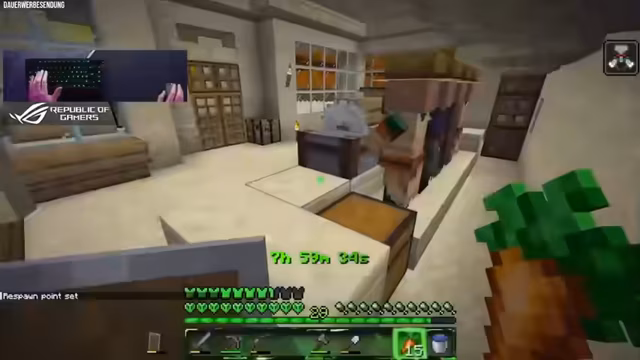 04:24:35Nach dem erfolgreichen Sammeln der notwendigen Ressourcen wird der gemeinsame Bau eines Full-Enchanter-Tables unternommen. Das Projekt, das als Errungenschaft und Attraktion für die Tankstelle dient, wird mit großer Sorgfalt umgesetzt. Gleichzeitig wird über die anfängliche Gestaltung des Raumes diskutiert, bei dem Holzböden als praktische und ästhetische Lösung gewählt werden, um die Usability zu verbessern und die Funktionalität des neuen Raums zu demonstrieren.