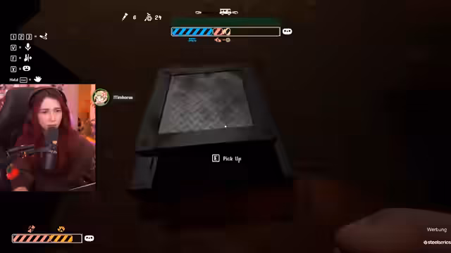 02:08:26Nach einem vermeintlichen Tod im Spiel stellt das Team fest, dass das Fahrzeug ohne Licht fährt. Sie aktivieren die Scheinwerfer und finden einen Tankstellenbereich mit Ersatzteilen, Flares und Motoröl. Dabei kommt es zu Verwirrung über das Einsammeln von Gegenständen und Sprengungen durch Dynamit, die zu Jump-Scares führen. Ein Bär taucht auf und sorgt für panische Reaktionen, während die Teilnehmer versuchen, Hüte zu tauschen und das Fahrzeug mit neuen Teilen aufzurüsten. Es entstehen Diskussionen über die Spielmechanik, etwa wie man Gegenstände aufhebt oder Feuerzeuge benutzt, und über technische Schwierigkeiten mit der Steuerung.