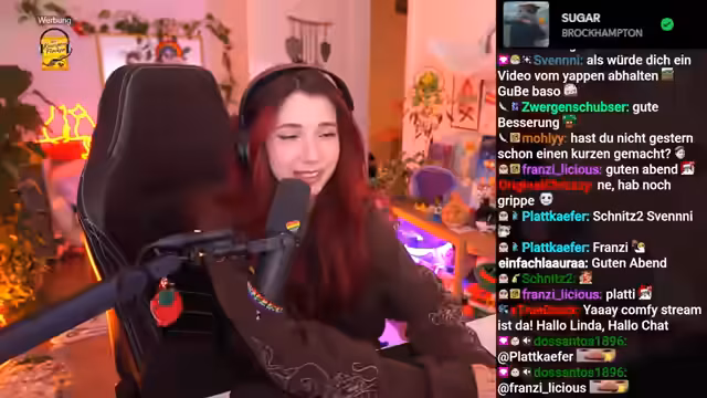 00:19:04Baso teilt ihre Weihnachtsvorbereitungen mit und erwähnt, dass sie bereits Geschenke bestellt hat, aber noch Katzenleckerlis und Weihnachtsdeko besorgen muss. Sie diskutiert mit dem Chat über Wichtelgeschenk-Ideen im 5-Euro-Bereich und schlägt vor, stattdessen praktische oder persönliche Gegenstände wie kuschelige Socken, einen schönen Tee oder eine kleine Duftkerze zu verschenken, um Allergierisiken zu vermeiden. Dabei lobt sie den Chat für kreative Vorschläge und betont, dass sie selbst gerne gemütliche Socken im Winter trägt.