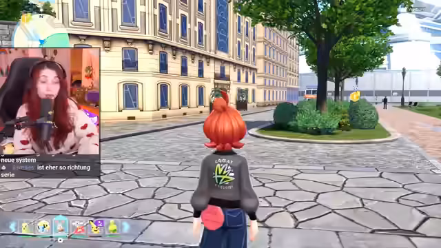 01:15:16Nach der Erstellung des eigenen Avatars mit roten Haaren und blauen Augen beginnt das Spiel im Zug, der in Illumina City ankommt. Die Stadt wird als lebendig und stylisch beschrieben, der Streamer zeigt sich begeistert. Eine erste Interaktion mit der Einwohnerin Jet, der Präsidentin der Quasar Corporation, leitet die Einführung in die Spielwelt und die Thematik der Koexistenz zwischen Mensch und Pokémon ein, trotz fehlender Vertonung, die als etwas veraltet empfunden wird.