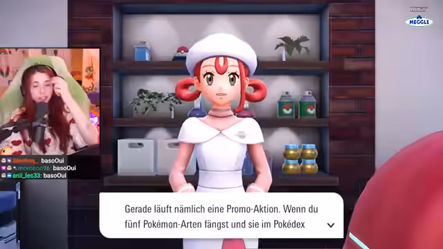 02:55:08Der Streamer wird in die Geschichte des Spiels eingeführt. Er wird von der Figur Magnolia in ein sogenanntes Forschungsteam aufgenommen. Er erhält Forschungsaufgaben, wie das Fangen bestimmter Pokémon in Wildsektoren. Das Abschließen von Aufgaben steigert das Forschungslevel und ermöglicht es, wertvolle Belohnungen wie Attacken-TMs zu erhalten. Die Interaktion mit NPCs leitet den nächsten Teil der Mission ein.