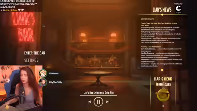 01:35:26Der Streamer startet das Spiel 'Laias Bar' und bemerkt, dass er noch nie Poker gespielt hat und dies als hinderlich empfindet. Das Spiel basiert darauf, Lügen zu erkennen und ehrlich zu sein, was für den Streamer neu ist. Er gibt zu, dass er die Pokerregeln nicht kennt und es nicht versteht, wie das Spiel funktioniert, was zu Verwirrung führt.