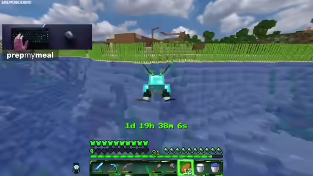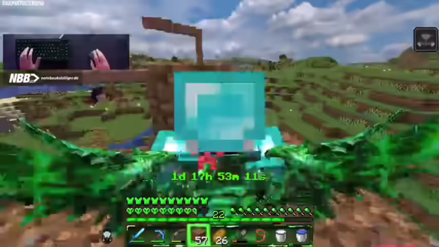01:53:17Der Full-Enchanter ist nun einsatzbereit, was bedeutet, dass Prod 4, Sharpness 5, Looting 3 und andere nützliche Verzauberungen nun leichter zu erhalten sind. Die vorhandene Mobfarm unterstützt diesen Prozess zusätzlich. Es wird die Freude darüber ausgedrückt, nun stabile Verzauberungen durchführen zu können. Der Streamer spricht über das Erreichen von Level 30 und die Gefahren in einem Ultra-Hardcore-Projekt mit nur einem halben Herzen. Die Monster erleiden teilweise zu viel Fallschaden. Es wird überlegt, wie man die Hexe dazu bringen kann, sich selbst zu heilen, indem sie sich mit Tränken bewirft. Es wird vermutet, dass ein Block über ihr das verhindern könnte. Die Lösung ist vermeintlich einfach.