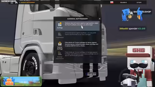 00:28:06Die eigentliche Fahrt startet in Polen, genauer gesagt in Danzig. Der Streamer nimmt einen langen Auftrag nach Griechenland an und beginnt die Reise quer durch Europa. Zwischen den Fahrtmanövern gibt es zahlreiche Spendenaufrufe und Dankesreden an die Zuschauer. Die Spenden für Vamos Madeira fließten reichlich, und der Streamer zeigte sich begeistert von der Unterstützung, wobei er die Spendenzählung kontinuierlich im Auge behielt.