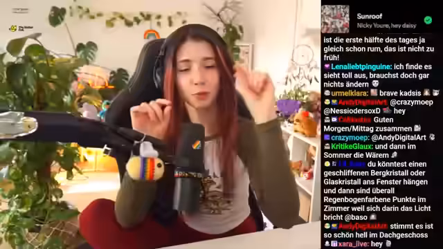 00:12:31Der Stream beginnt unerwartet früh, da die Katzen den Stream gestartet haben. Es wird über die Helligkeit des Streamingzimmers durch das viele Tageslicht gesprochen und wie schön die lichtdurchflutete Wohnung ist, was besonders im Dachgeschoss zur Geltung kommt. Es wird die Freude darüber ausgedrückt, dass man so viele Pflanzen in der Wohnung haben kann, weil es so hell ist. Zudem werden Lichtfänger und Fenstersticker erwähnt, die bei Sonneneinstrahlung Regenbogenfarben erzeugen und den Raum verschönern. Trotz der frühen Stunde und leichter Müdigkeit herrscht gute Laune und Vorfreude auf den Stream und das gemeinsame Spiel mit Therese. Es wird betont, wie positiv die Streams der letzten Wochen waren und wie sehr man sich auf die heutige Session freut. Die Schwierigkeiten, Multiplayer-Spielstände mit anderen Streamern kontinuierlich zu verfolgen, werden angesprochen, aber die Freude über die gut funktionierende Zusammenarbeit mit Therese wird hervorgehoben.