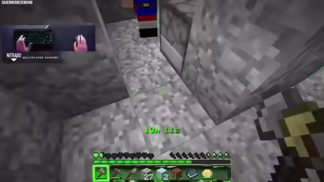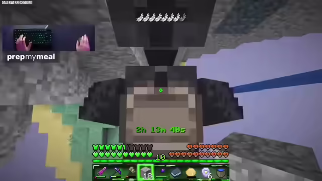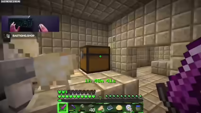 02:05:12Der Kampf gegen die Königin beginnt, aber es stellt sich schnell heraus, dass er sehr schwierig ist. Basti hat nur wenig Essen dabei. Die Königin fokussiert sich hauptsächlich auf Stegi. Es wird festgestellt, dass die Königin sich teleportiert und der Raum während des Kampfes geschlossen wird, was die Situation zusätzlich erschwert. Basti wird von einem Donner getroffen und stirbt. Sie beschließen, sich zurückzuziehen, Rüstung und Essen zu besorgen und es erneut zu versuchen. Sie nehmen ihre Sachen wieder mit und entschuldigen sich für den gescheiterten Versuch. Basti gibt Stegi Handschuhe und eine Kette. Sie wollen stärker zurückkehren. Basti will herausfinden, was der Fallschirm bewirkt. Man kann Healing-Steine essen, um Regeneration zu erhalten. Sie verlassen die Arena, um sich auszurüsten und vorzubereiten. Sie stellen fest, dass die Königin die Tür schließt und die Blöcke nicht abgebaut werden können, was die Flucht unmöglich macht.