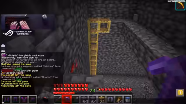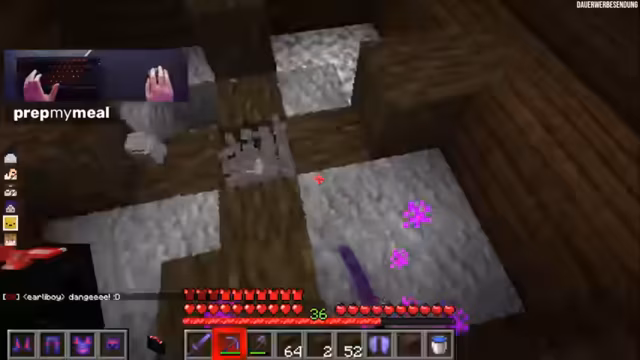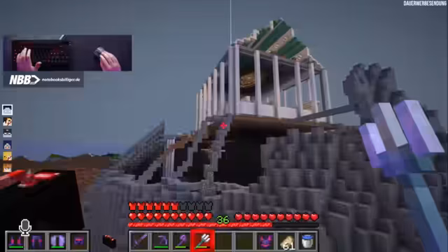 06:10:49Das Hauptthema des Streams ist der Bau einer komplexen Herausforderung in Minecraft: ein Jump'n'-Run-Gang, um den Zugang zu einem Drachenei zu erschweren. Die Gruppe plant, einen langen, anspruchsvollen Parcours über dem Void zu bauen, der umgangen werden kann, aber mit sozialem Hohn durch die Community geahndet werden soll. Technische Fragen stehen im Vordergrund, insbesondere die Sprengung von unzerstörbarem Bedrock. Hierfür wird der Bedarf an TNT und Schwarzpulver analysiert und verschiedene Farmen zur Materialgewinnung diskutiert. Auch die Funktionsweise eines 'Beacon', eines Leuchtfeuers, das Effekte wie Schnelligkeit verleiht, wird erklärt.