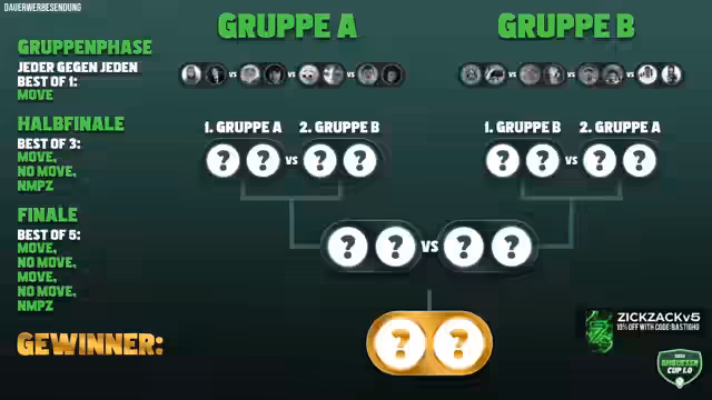 00:14:53Das Turnier ist in zwei Gruppen aufgeteilt, wobei die Teams in der Gruppenphase im Best-of-One-Modus gegeneinander antreten, gefolgt von Best-of-Three im Halbfinale und Best-of-Five im Finale. Der Fokus liegt zunächst auf der Gruppenphase im Modus 'Move'. Der Streamer weist darauf hin, dass es aufgrund der Live-Übertragung jedes Spiels zu Wartezeiten kommen kann. Er betont, dass der Cup einen beträchtlichen Preispool bietet, darunter 10.000 Euro für den ersten Platz sowie einen Asus ROG Flow Z13. Asus ROG und Geogesser unterstützen das Turnier als Sponsoren. Es wird eine Geogesser-Challenge geben, bei der zwei Tickets für die Geogesser Weltmeisterschaft in Kopenhagen verlost werden. Zudem werden im Laufe des Streams Codes für GeoGuessler Pro-Mitgliedschaften vergeben. Der Streamer bedankt sich bei den Sponsoren und Partnern für ihre Unterstützung.