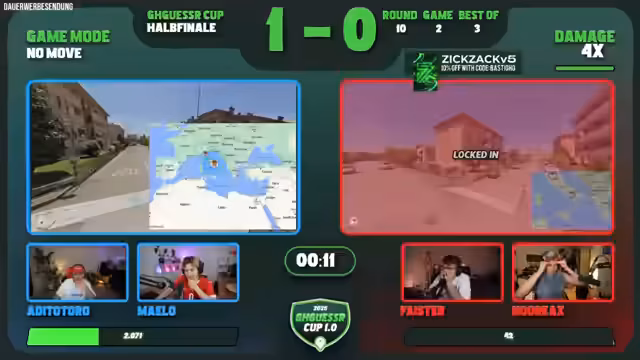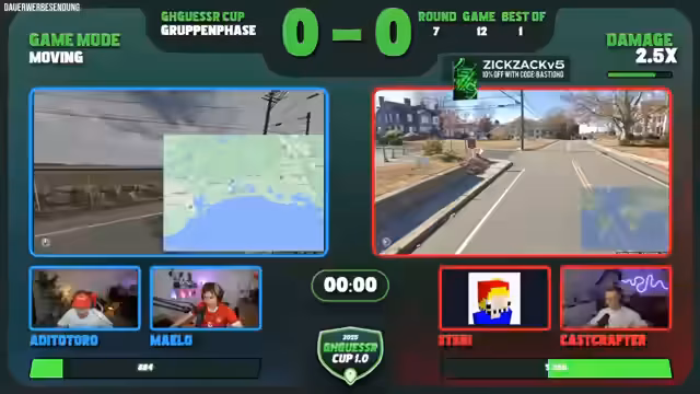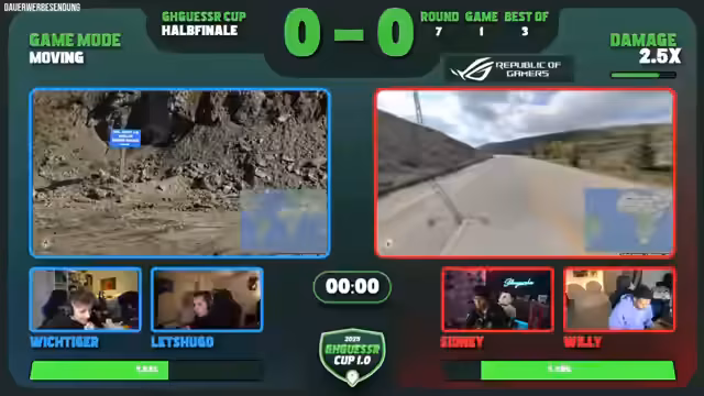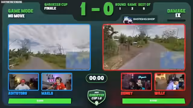 04:07:56Team Blau ist kurz davor, das Move-Game gegen Sydney zu gewinnen. Hugo findet eine Domain und pressuret, aber Sydney findet das gleiche Schild. Hugo ist minimal näher. Eine Runde in Israel mit gelben Plates wird von beiden Teams erkannt, aber Wichtiger ist näher dran. Eine Runde in Uruguay mit einem Trident Pole wird für Sydney entscheidend, während Wichtiger und Hugo in Europa und damit im falschen Kontinent sind. Die Move-Runde geht an Sidney und Willi. Es folgt das No-Move-Spiel. Es wird kurz eine Pause eingelegt, um die Strategie zu besprechen. Die Anzeige zeigt nun 0-1 an. Wichtiger und Hugo können auf ihrer Leistung aufbauen. Sydney und Willi spielen gut. Es wird in die No-Move-Runde gewechselt. Die Dashes sind irreführend. Es ist Spanien, aber es gibt einen Frankreich- und einen Norwegen-Guess. Willi sichert mit Spanien ab. Die fehlende Erfahrung von Wichtiger und Hugo wird deutlich. Eine Runde mit gelben Außenlinien und blauem K deutet auf Südafrika hin. Wichtiger geht nach Südafrika, während Sydney auf Mexiko zoomt. Das wäre fast ein großer Schaden gewesen.