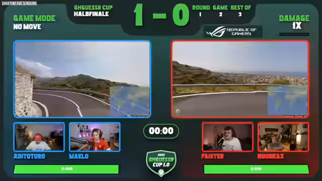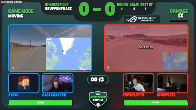 00:53:10Die erste Runde des GHGUESSR Cups wird durch das Team 'Wichtiger und Hugo' entschieden, die sich den ersten Punkt in der Gruppenphase gegen 'Merle und Kroko' sichern. Dabei wird auf minimale Fehler hingewiesen, die in einem Friends in Creators Cup passieren können. Ein Fokus liegt auf der Vermeidung von Mini-Spoilern durch die Health Bar. Es wird festgestellt, dass die niedrige Kameraperspektive in der aktuellen Runde aufgrund von Datenschutzgesetzen in bestimmten Ländern eingesetzt wurde, was ein Meta-Wissen für Geoguessr-Spieler darstellt. Die Teams 'Papaplatte und ohne Pixel' sowie 'Adi und Maelo' werden aufgefordert, der Lobby beizutreten, wobei der Multiplier ab Runde 5 aktiviert wird. Die Teams werden über die Bedeutung ihrer verbleibenden Spiele informiert, da die Top 2 der Gruppe weiterkommen. Der Link zum Beitritt wird erneut im Discord geteilt und der Round Multiplier wird korrekt auf 4 eingestellt, um ab Runde 5 zu beginnen. Eine Diskussion über die Einführung eines Timers von zwei bis drei Minuten wird geführt, um zu verhindern, dass Runden unendlich lang dauern, wobei schließlich entschieden wird, vorerst keinen Timer zu verwenden.