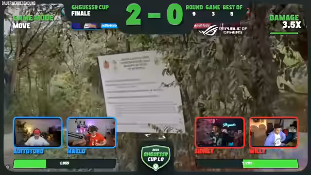 02:33:13Es wird überlegt, ob es sich um Kanada handelt. Sydney erkennt Yukon auf seinem Screen, ein Bundesstaat in Kanada. Es wird erwartet, dass das Game sein wird. Es ist der Win für Sydney und Willi. Kroko und Merle spielen gegen Feister und Noreax. Es ist ein entscheidendes Spiel. Merle und Koko haben einen Punkt, Feister und Noriax haben bereits zwei Punkte. Es wird überlegt, ob Merle und Koko gewinnen können. Es gibt mal wieder Probleme mit Krokoboss, der die Runde anscheinend nicht joinen kann. Die Runde sieht erst mal direkt schwierig aus. Es wird überlegt, ob es sich um Argentinien oder Mexiko handelt. Die Sonne ist im Norden, damit vielleicht dann eher in Argentinien. Kroko haut einen Cordoba-Region-Argentinien-Gest raus. Feister reagiert mit einem Argentinien-Gest. Merle geht Sicherheitshalber nach Mexiko. Es wird eine Runde auf den Azoren erwartet. Das sind 500 Punkte. Sehr schwer zu liegen. Es wird eine Brasilien-Runde erwartet. Es gibt sehr viel Information in Bahia. Kroko ist nah dran und Feister rettet sich. Es wird eine kanadische Flagge gesehen. Die Landschaft sieht für mich ganz stark nach Neufrundland aus. Es wird überlegt, ob die Spieler genug Knowledge haben, um das hier zu kriegen. Es wird auch überlegt, ob es sich um eine Wannabe-Irland-Meta handelt. Noriax zu langsam und das ist großer Schaden. Es wird eine Argentinien-Runde erwartet. Es wird eine Südamerika-Runde erwartet. Merle hat nicht gegessen. Das ist ärgerlich. Es wird eine Atacama-Wüste in Chile oder Peru erwartet. Feistar und Noreax holen drei Wins in der Gruppenphase und sind damit hundertprozentig auf Platz 1.
