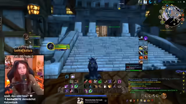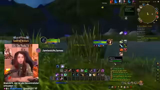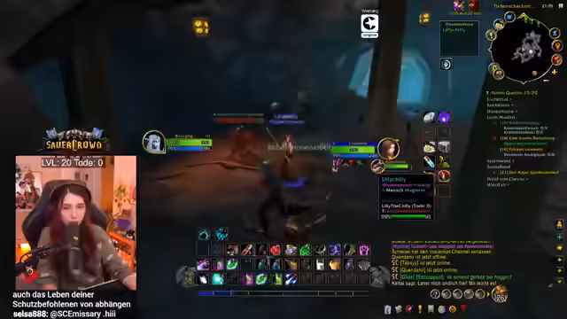 02:15:01Der Streamer nutzt den Stream, um die Welt von World of Warcraft systematischer zu erkunden. Er begibt sich in die Stadt Goldhain, um Berufe wie Kochen und erste Hilfe zu lernen, und plant einen Besuch in Stormwind für weitere Berufsmöglichkeiten. Dabei unterstützt er Lilly aktiv bei ihren Quests und zeigt ihr, wie man Buffs abrufen und nutzen kann. Diese Interaktion dient nicht nur dem Gameplay-Fortschritt, sondern auch dem sozialen Aspekt, da sie gemeinsam Quests absolvieren und sich gegenseitig schützen, besonders in potenziell gefährlichen Gebieten wie Höhlen.
