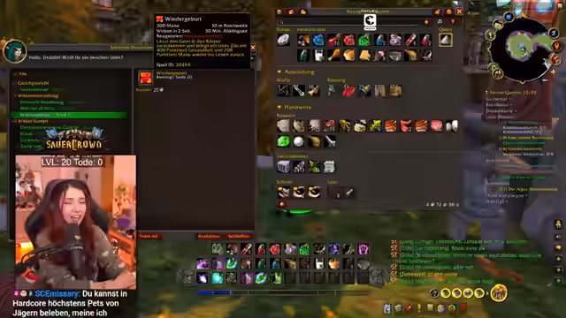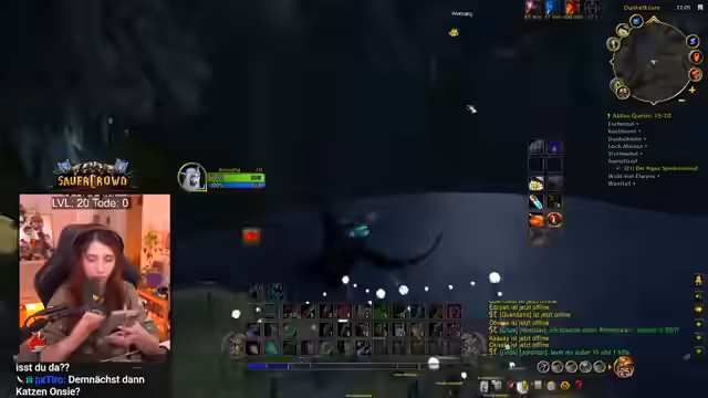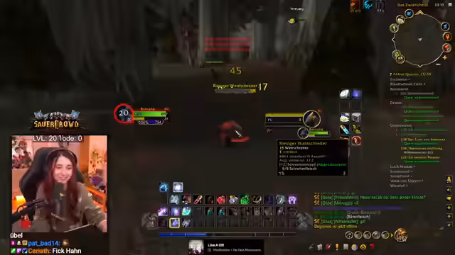 04:42:01Ein bedeutendes Ereignis im Spiel war das Erreichen von Level 20 mit einem Druiden, was den Traum des Streamer, eine Katze als Begleiter zu haben, wahr werden ließ. Nach anfänglichen Schwierigkeiten, insbesondere mit Mana-Management in Dungeons wie Todesminen, bereitete dieser Meilenstein einen Wendepunkt und machte das Spiel für den Streamer deutlich spaßiger. Dies löste im Chat eine Diskussion über die Schwierigkeiten in World of Warcraft aus, wobei das Sammeln von Kräutern als eine der größten Herausforderungen identifiziert wurde.