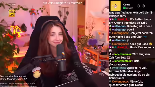 04:28:48Die Streamerin kündigt an, dass alle Leute, die gebannt wurden, wieder entbannt werden, da sie eine gnädige Königin sei. Sie überlässt die Arbeit den Mods und betont, dass die Bannliste eigentlich fein kuriert ist. Es wird sich darüber gewundert, warum es so wenige geschafft haben, Erster zu werden, da es eigentlich super easy sei. Neptun hat fünf Subs verschenkt, und Valorant hat einen extra Sub gegiftet, wodurch es wieder eine neue Murmelrunde gibt. Meryvin hat zehn Subs verschenkt, und Valorant hat drei extra Subs draufgehauen, wodurch es schon wieder vier Murmelrunden gibt. Es folgen weitere Danksagungen für Sub-Gifts von Infamous, Lunensis, Jensis, Silent Night, Hanuta und Lari, wodurch die Anzahl der offenen Murmelrunden auf neun steigt.