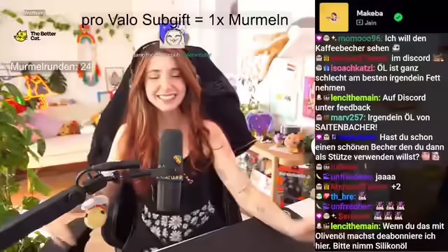 01:18:24Bei Erreichen von 1.500 Subs wird das Mikrofon geölt. Es werden verschiedene Öle zur Auswahl gestellt, über die der Chat abstimmen kann. WD-40 wird ausgeschlossen. Momo spendet zehn Zabs, Valorant legt zwei drauf, was zu 26 Murmelrunden führt. Feedback wird im Discord erwartet, besonders wenn es um das Ölen des Mikrofons geht. Lunenses Expertise wird in Frage gestellt, da das Ölen des Mikrofonarms keine Wissenschaft sein sollte. Trotzdem wird in Aussicht gestellt, die Ölung live im Stream zu zelebrieren, inklusive der Auswahl des passenden Öls durch den Chat. Es wird betont, dass keine Verantwortung für eventuelle Probleme übernommen wird, die durch die Ölung entstehen könnten.