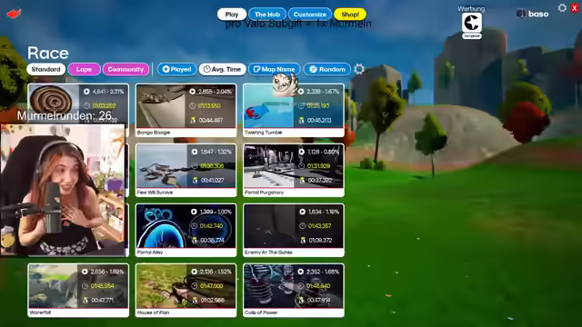 03:39:05Es wird auf das Kleingedruckte hingewiesen: Wenn eine Murmel auf dem ersten Platz landet, werden alle aktuellen Murmelrunden gelöscht. Landet eine Murmel auf dem letzten Platz, werden diese verdoppelt. Sollten nicht alle offenen Murmelrunden geschafft werden, werden diese in die nächsten Streams mitgenommen. Zunächst werden die normalen Maps gespielt, danach Community-Maps, da man bei Community-Maps immer ein bisschen gucken muss. Es wird betont, dass die Streamerin nichts gemacht hat und unschuldig ist.