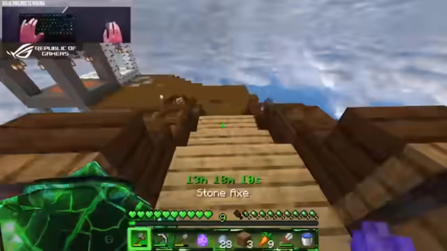 02:57:09Nach der triumphalen Siegesfeier wechselt der Stream das Thema und stellt sein NoBlock Minecraft-Projekt vor. Das Ziel ist es, von einer leeren Insel ausgehend mit der Hilfe von Eiern, die zufällige Strukturen spawnen lassen, die Welt zu erweitern. Der Streamer zeigt die Vorgehensweise: Er platziert ein Ei, wartet 15 Minuten und baut die neu entstandene Fläche aus. Er legt Wert auf eine ansprechende Optik und sammelt Ressourcen wie Dirt, Redstone und spezielle Tiere wie einen seltenen Wolf, um das Projekt voranzutreiben.