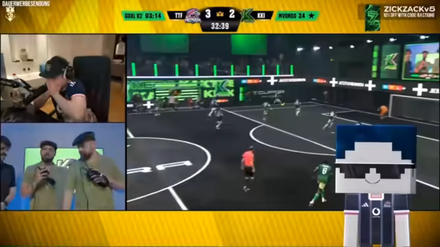 02:20:11Die Spannung im Spiel steigt, da in der 38. Minute die Spielregel doppelte Tore aktiviert. Das bedeutet, jedes weitere Tor zählt doppelt und kann das Spiel entscheidend drehen. Bis dahin dominiert das eigene Team die Partie und erarbeitet sich Chancen. Abu hervorragend im Tor und das Team zeigt eine starke kämpferische Leistung. Ein Tor kurz nach der 38. Minute wird durch einen Abpraller ermöglicht, was die Glücklichkeit unterstreicht, aber letztendlich zu einem klaren Sieg mit 9:2 führt.