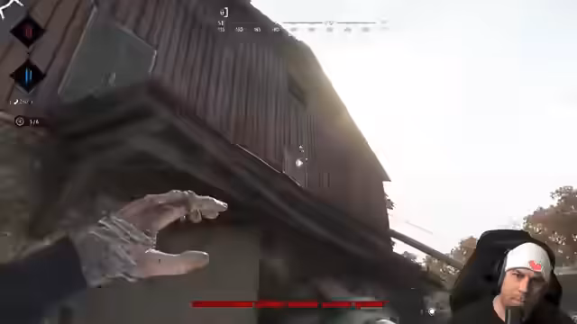 00:21:35Das Gameplay wird intensiver und actiongeladener. Der Streamer beschreibt detailliert seine Erlebnisse im Spiel, darunter ein tödlicher Angriff, den er überlebt, und die Entdeckung mehrerer Gegner in einem Gebäude. Sein Erzählstil ist geprägt von emotionalen Reaktionen wie 'Oh no!' und 'Jetzt blutet er!', was die Spannung für die Zuschauer erhöht und seinen Erlebnischarakter unterstreicht.