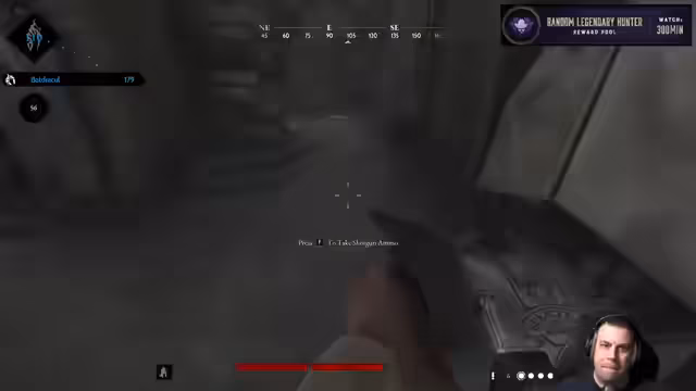 01:41:40Während der Krampus-Quest versucht das Team, durch vorsichtiges Positionieren und Ausnutzen von Deckungen Gegner zu locken. Sie beobachten mehrere versteckte Teams und diskutieren, ob sie allein auf dem Server sind. Nach Sprengen von Kisten und langem Warten beginnen sie mit dem Angriff auf die verbliebenen Grunts. Es werden Waffen wie Doppelpistolen mit FMJ-Munition eingesetzt. Der Streamer erwähnt, dass für die Quest 25 Kills nötig sind und manuell Munition nachgeladen wird.