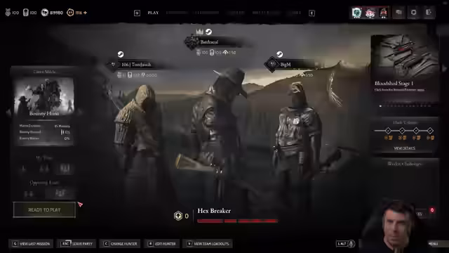 00:28:27Der Stream zeigt die Durchführung mehrerer Runden Hunt: Showdown. Der Streamer kommentiert das Geschehen live, macht Vorhersagen über das Spielgeschehen und berichtet über seine Ausrüstung und Erfolge. Es kommt zuSpawnkämpfen und hektischen Momenten. Während des Gameplay werden wiederholt die Chatbefehle für das Quiz und die Giveaways wiederholt, um die Community auf die bevorstehenden Events aufmerksam zu machen und maximale Teilnahme zu sichern.