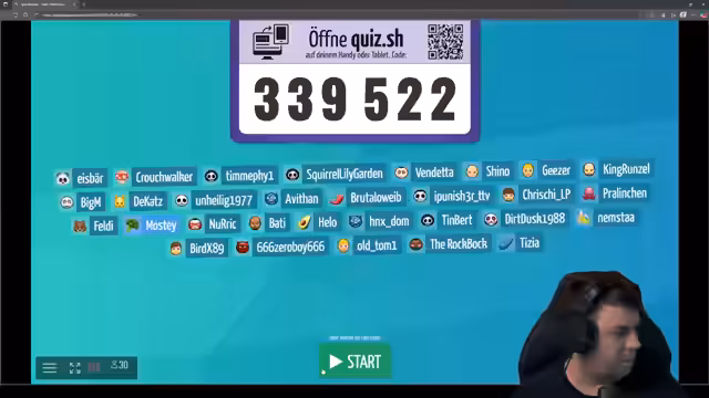 05:01:05Nach mehreren Runden im Spiel wird ein Quiz angekündigt, an dem die Zuschauer teilnehmen können. Der Streamer erklärt den Prozess: Teilnehmer müssen sich auf der Webseite Quiz.sh mit einem Code eintragen und einen Avatar auswählen. Es wird betont, dass die Antworten nicht im Twitch-Chat geschrieben werden dürfen, um die Fairness zu wahren. Der Streamer richtet die technische Einrichtung ein, um die Quizfragen auf dem Bildschirm zu präsentieren und beginnt damit, die Teilnehmerzahl zu erfassen und das Spiel vorzubereiten.