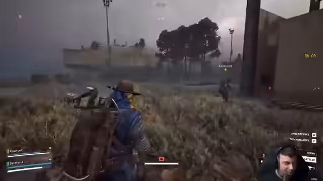 04:11:37Eine intensive Auseinandersetzung findet bei einer kleinen Hütte statt. Die Streamer sind in der Defensive und erhalten aus dem Gebäude heraus Feuerschutz. Der Gegner wird in einem kurzen, aber heftigen Kampf eliminiert, nachdem die Streamer mehrere Treffer gesetzt haben und der Gegner keine Heilung mehr hat.