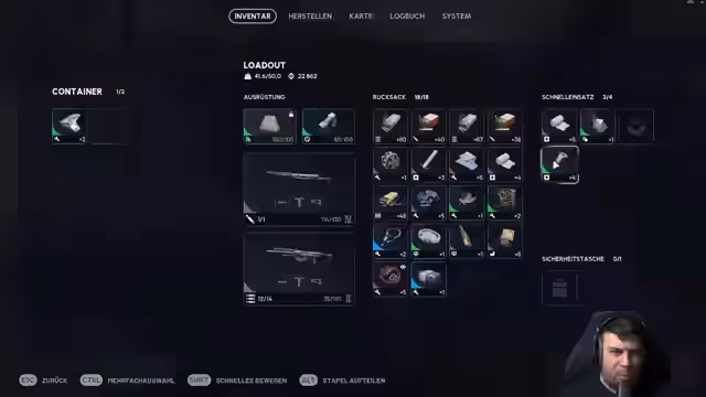 05:00:51Das Stream-Video beginnt mit dem Einstieg in eine neue Runde des Spiels Arc Raiders. Der Streamer und seine Begleiter, Kelan und Fero, planen, Missionen zu erfüllen. Das primäre Ziel ist das Zerstören eines Spitzers und einer Hornisse. Nach anfänglicher Unsicherheit über den Startpunkt beginnt die Gruppe, sich durch die Umgebung zu bewegen, trifft auf die ersten Gegner, darunter Spinne, und startet den Kampf. Die Ausrüstung wird vorbereitet, und es wird festgestellt, dass Granaten effektiv gegen bestimmte Gegner sind.